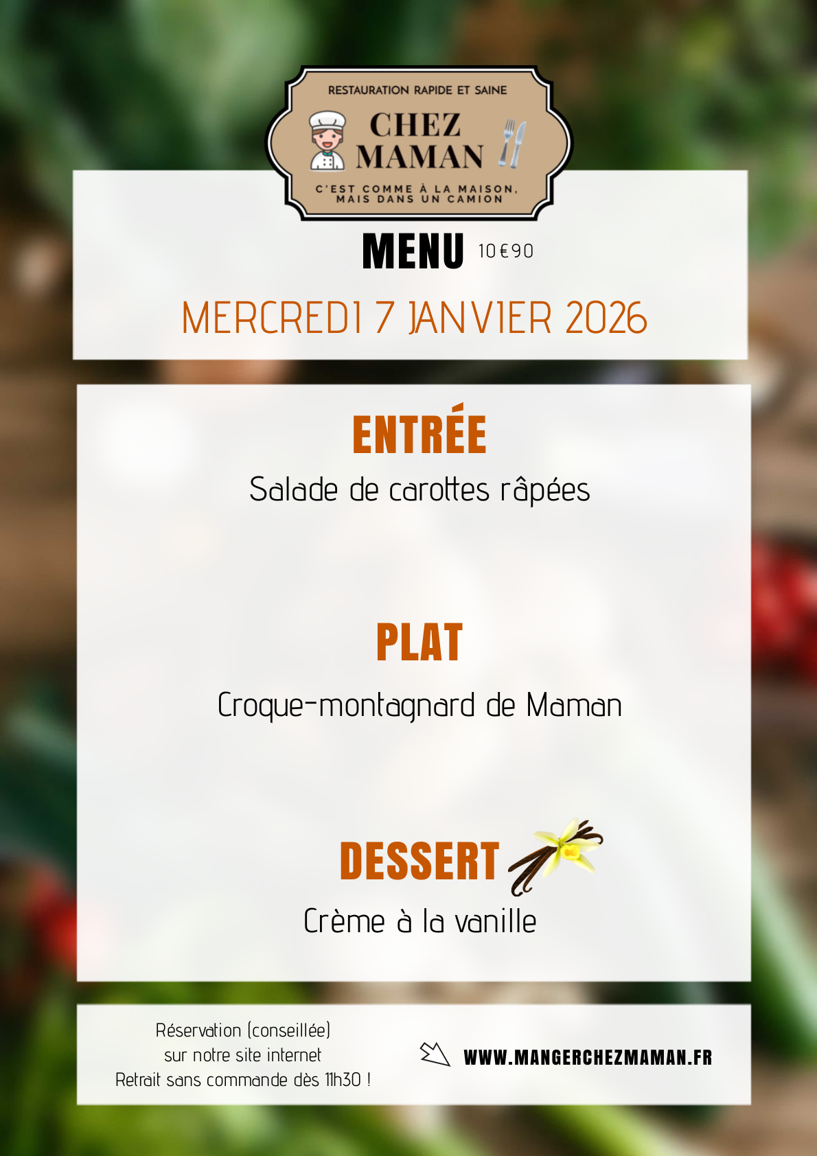 MENU MERCREDI 7 JANVIER 2026
