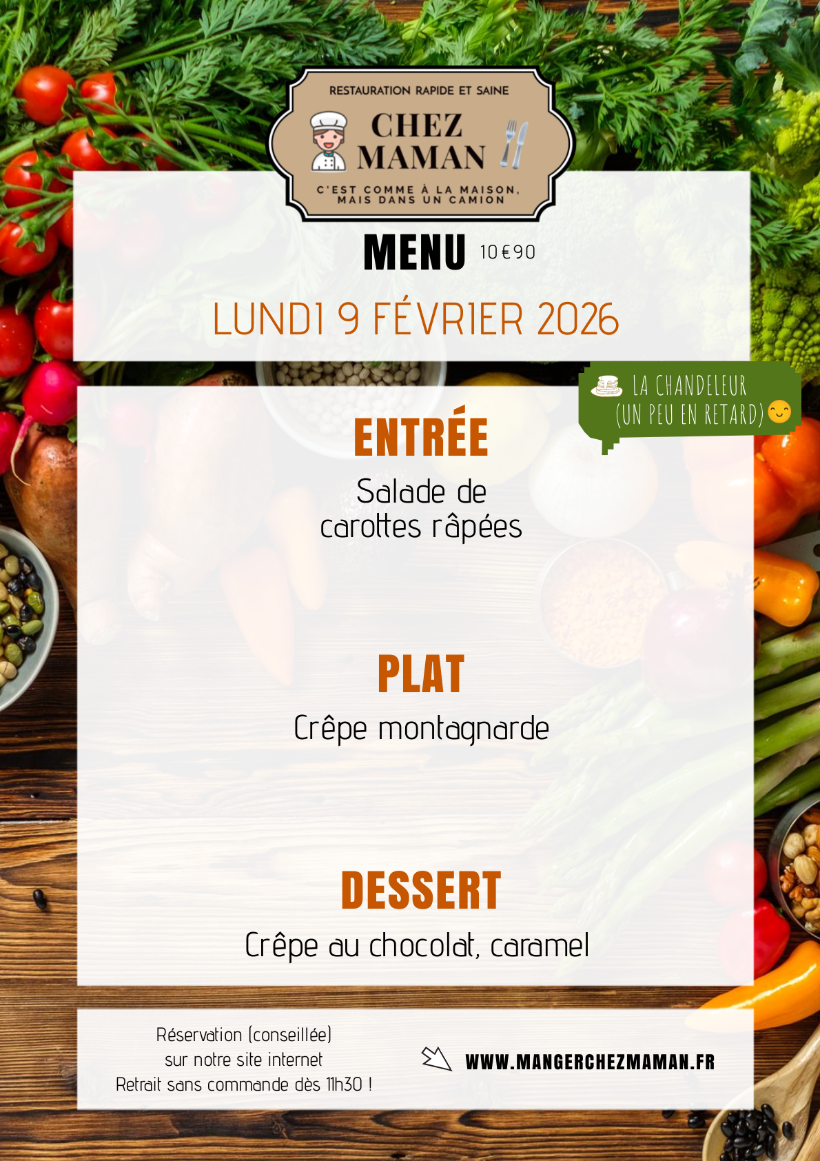 MENU LUNDI 9 FEVRIER 2026